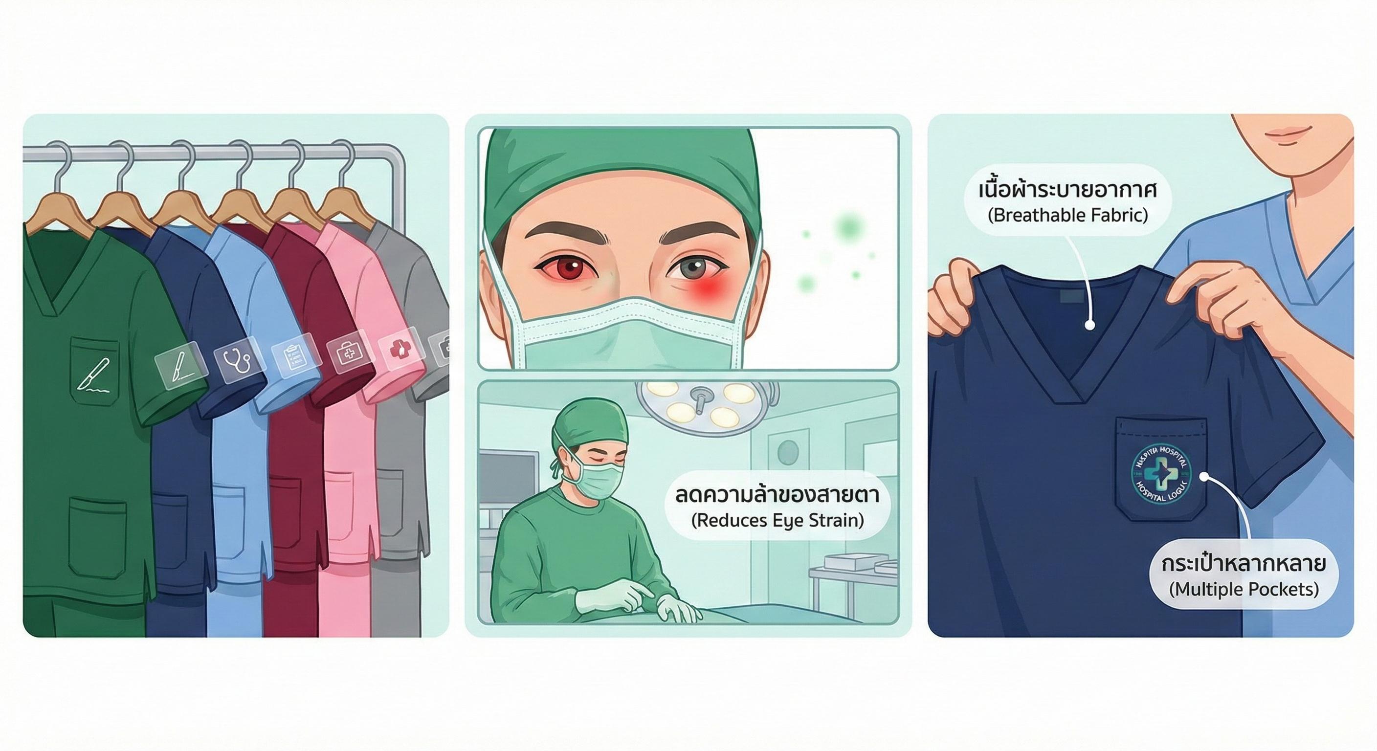 ดูบทความสีชุดสครับบอกอะไร? เจาะลึกความหมายและการเลือกสีให้เหมาะกับแผนกการแพทย์